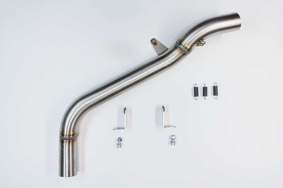 Hindle Exhaust slip-on adapter/mid-pipe available for the Honda CBR600RR. Switch out the stock mid-pipe and muffler, keep the under-the-seat muffler look.
