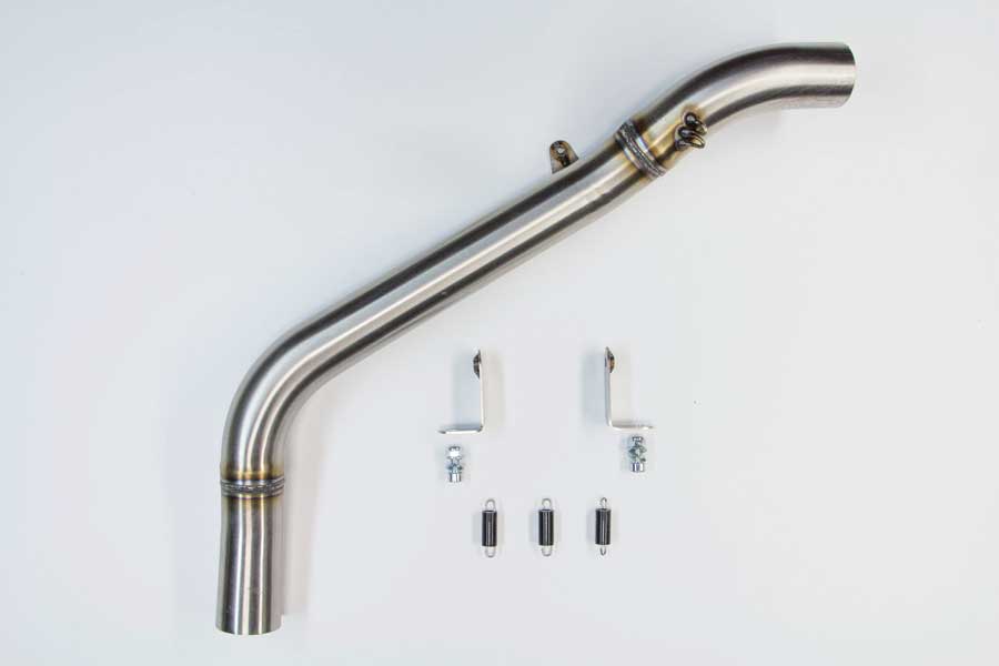 Hindle Exhaust slip-on adapter/mid-pipe available for the Honda CBR600RR. Switch out the stock mid-pipe and muffler, keep the under-the-seat muffler look.