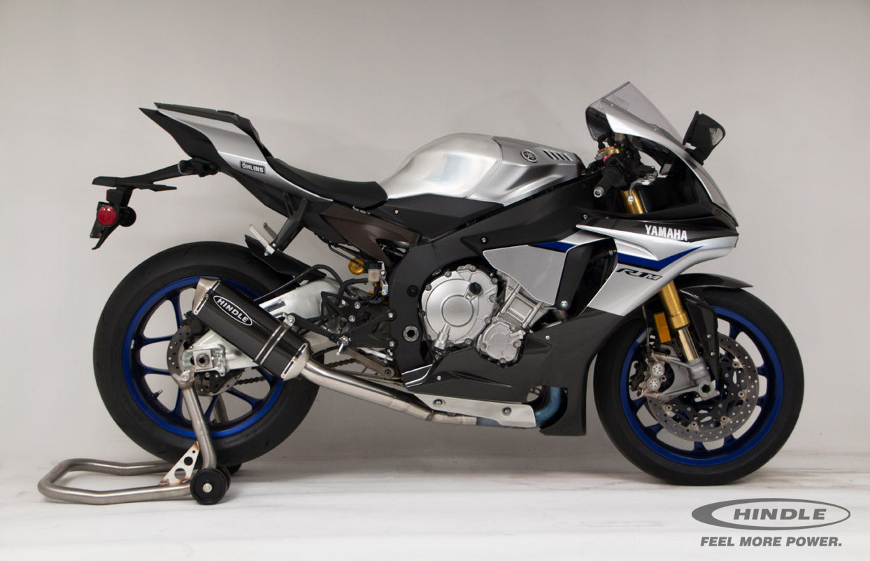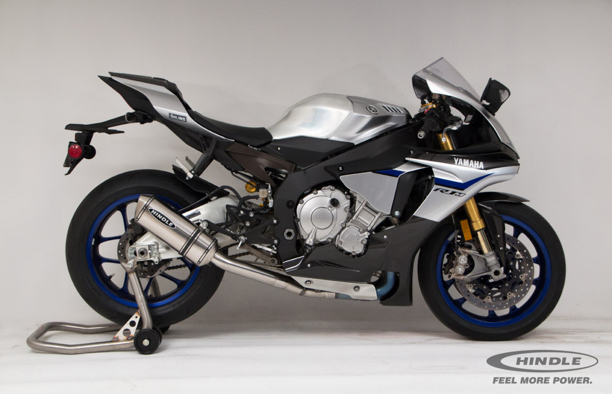 Hindle Exhaust 3/4 low mount front section available for the 2015-2024 Yamaha R1/R1-M. This system keeps the stock front primaries, but replaces the stock exhaust collector ("Y pipe") and mid-pipe and eliminates the catalytic converter. A popular choice among many Superbike/1000cc racers.