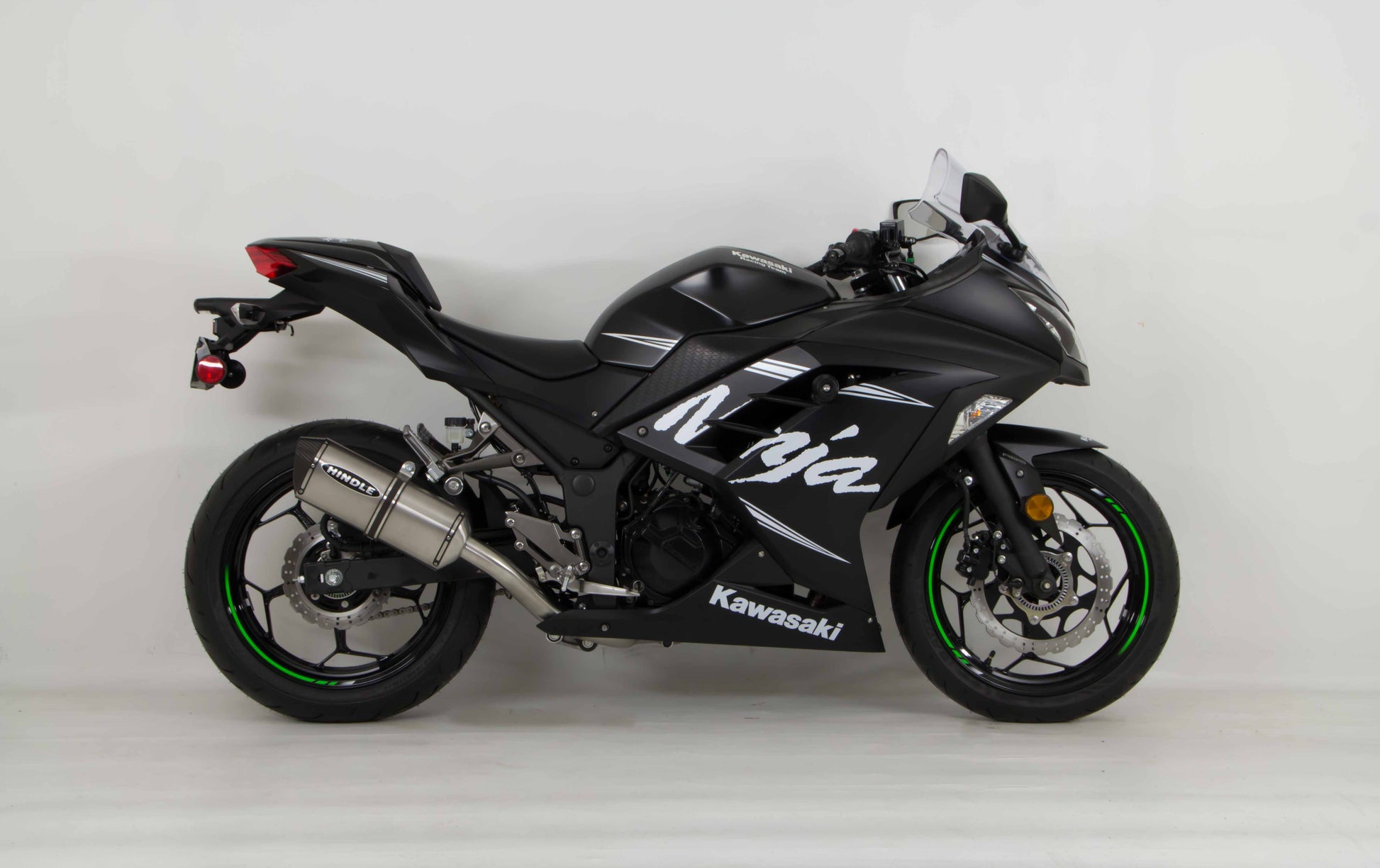 The Hindle Exhaust full system for the 2013-2017 Kawasaki Ninja 300R adds some nice performance, amazing sound and sheds heavy stock weight.