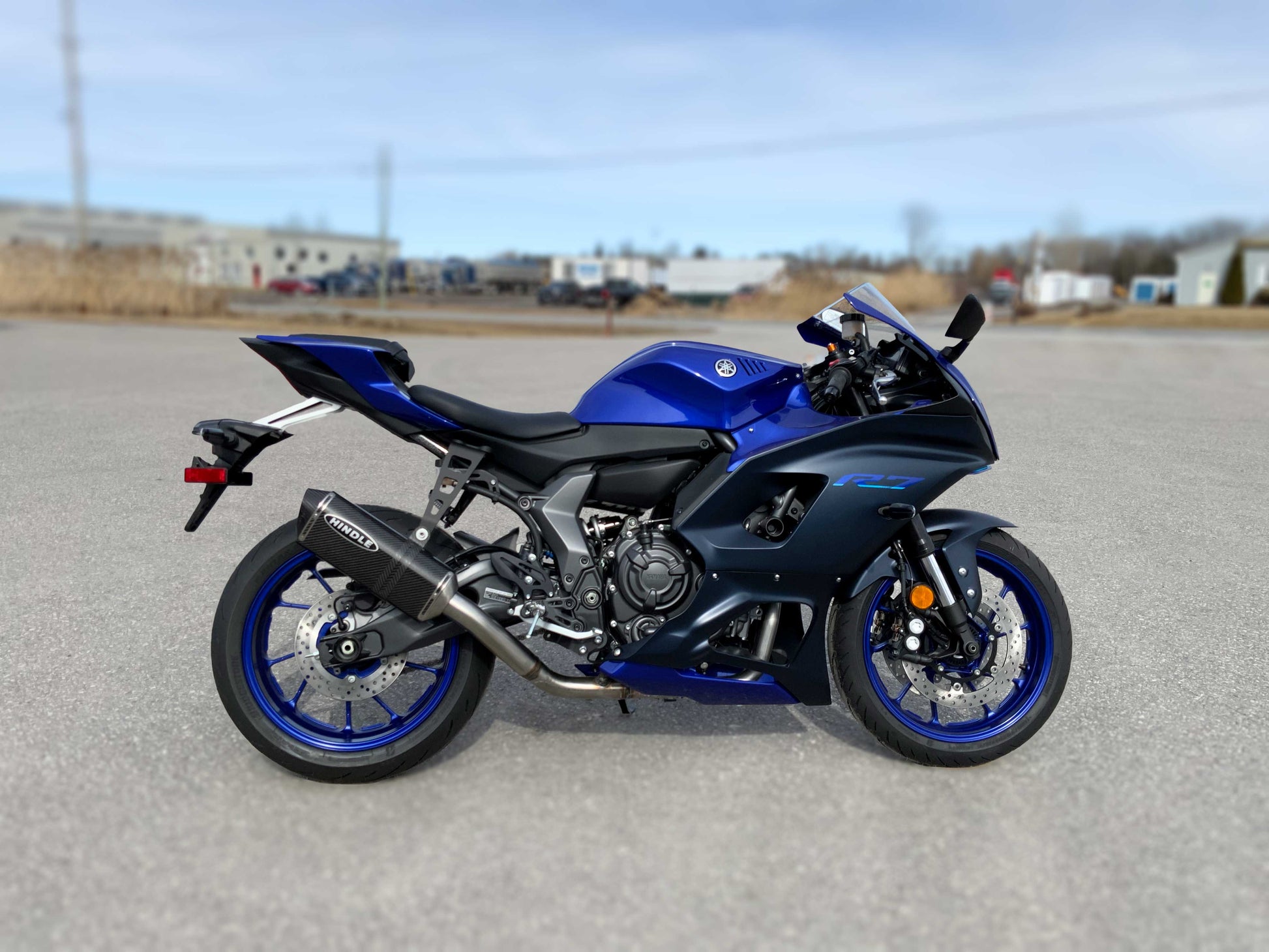 Hindle Exhaust System full system for the ever-popular 2022-2024 Yamaha YZF-R7, available here in our Evolution Muffler version.